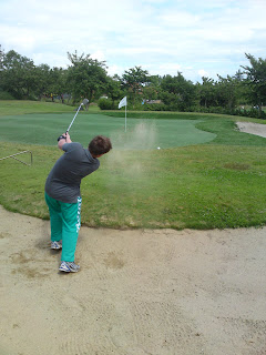 Vi startede med noget opvarmning og oplæring af de knap så øvede spillere på driving range’en og putting greenen. På greenen blev der, ud over at folk fik en fornemmelse af hvordan man brugte putteren, afholdt en lille putte konkurrence. Vinderen blev, med 12 puts på 6 huller, Lars Lund, som da det hele var færdigt fik overrakt en præmie: